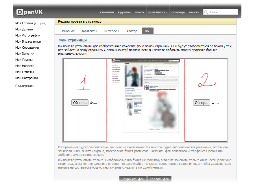 Страница установки фона
