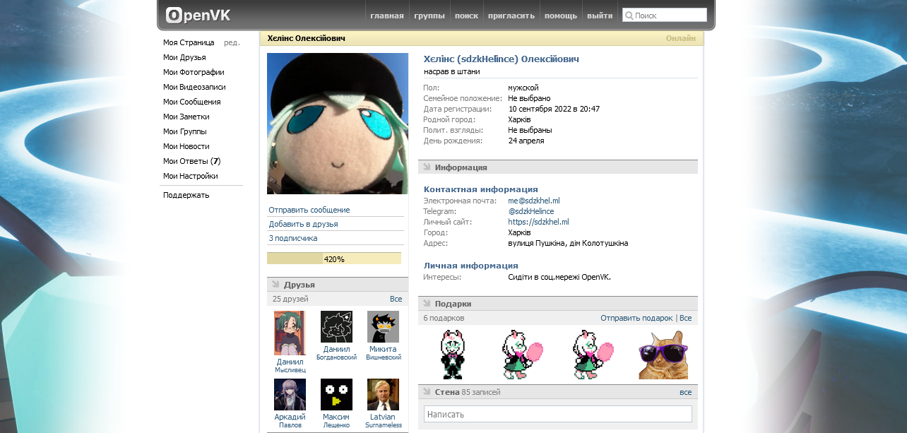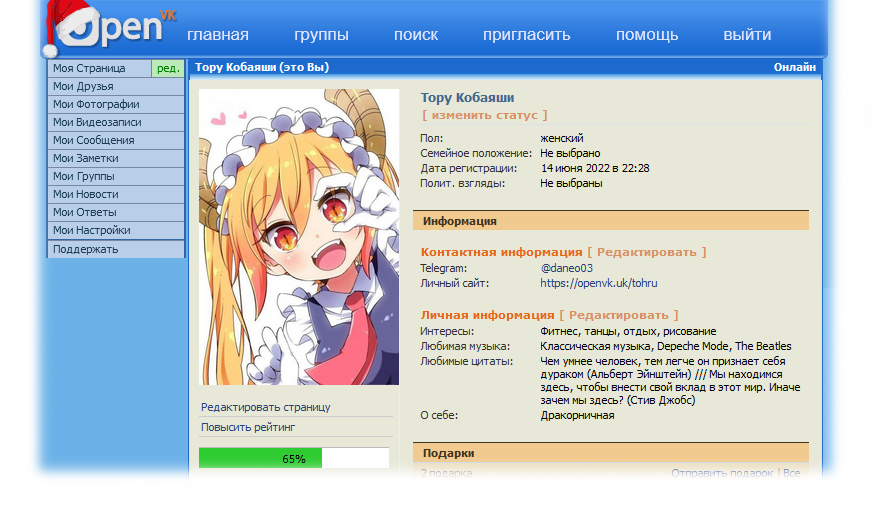 - После регистрации на сайте, вы автоматически попадёте в свой профиль