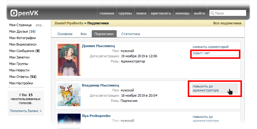 - Создайте команду администраторов из обычных участников или тех, кому вы доверяете