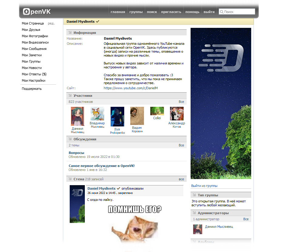 - Каждая группа имеет свой раздел вики-страниц, фотоальбомов, блок ссылок и обсуждений