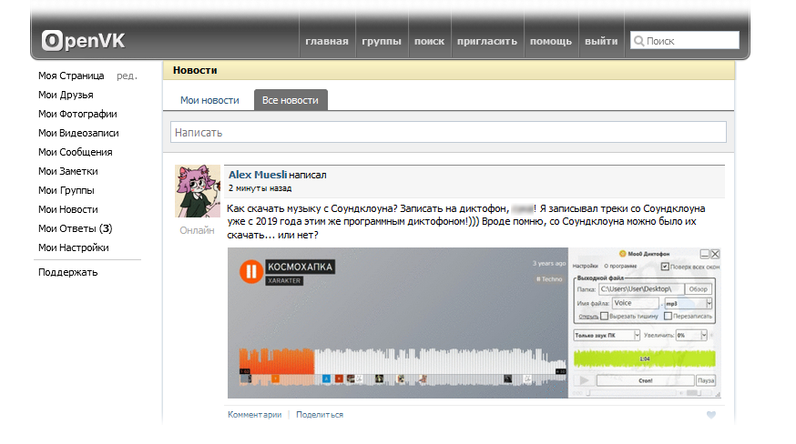 - Раздел "Мои Новости" разделяется на два типа: локальная лента и глобальная лента