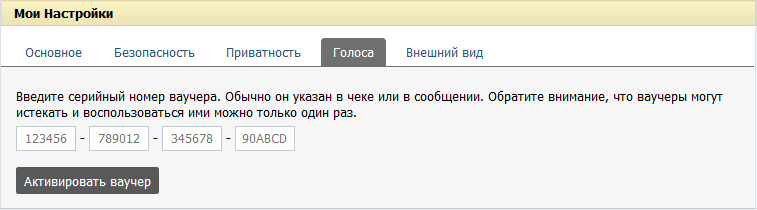 Внимание: После активации ваучера на вашу страницу, тот же самый ваучер нельзя будет активировать повторно